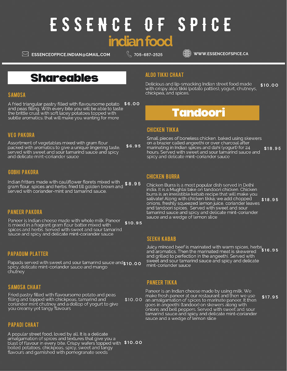 Introducing the Menu at Essence Of Spice